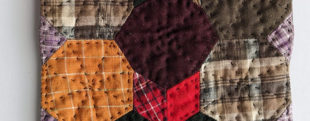 Piece of antique quilt bought from the Welsh Quilt Centre in September 2023. Too fragile to make into a needle case as planned. I worked up the design on graph paper and made a modern reproduction. Loved it so much I continued to design and make more needle case panels. Here’s another completed needlecase and…