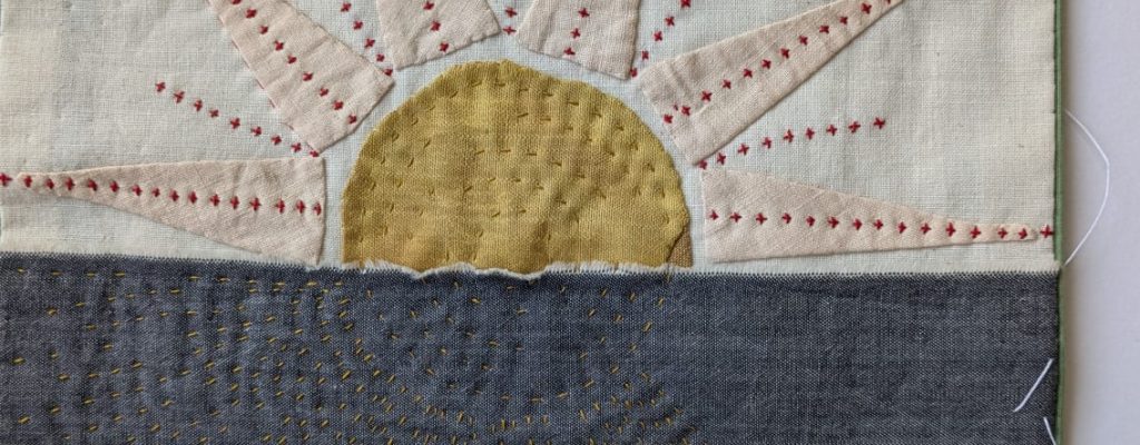 Finishing off my challenge piece for London Quilters exhibition 2025 at Swiss Cottage Library… Theme summer solstice.