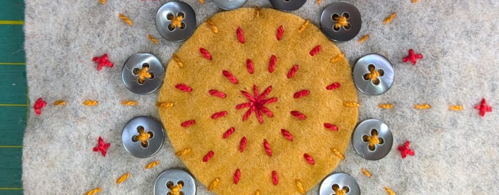 Samples for my slow stitch, Stitching on Wool, workshop as part of the London Quilters Exhibition at Swiss Cottage Library.
