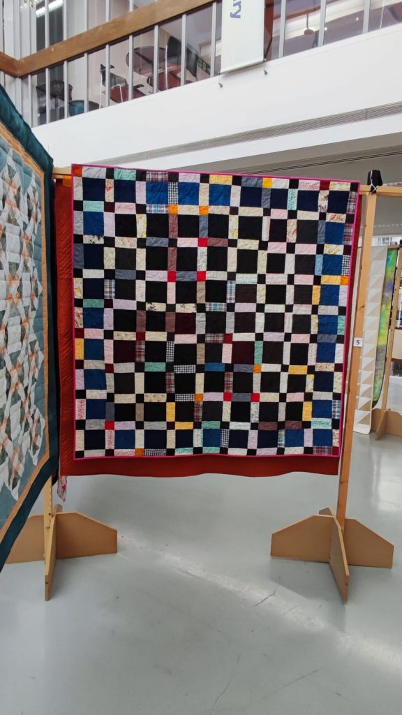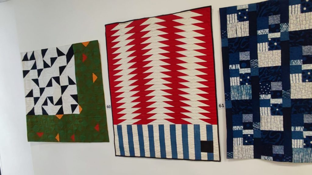 Also shown at the London Quilters Exhibition…another one patch inspired by the quilts of Magdalene Wilson & Eye dazzler inspired by the Navajo rugs in the Denver Art Museum