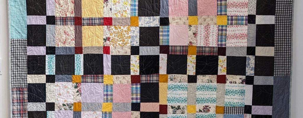 One patch hanging at Festival of Quilts 2024. Inspired by the quilts of Gees Bend quilter Magdalene Wilson.