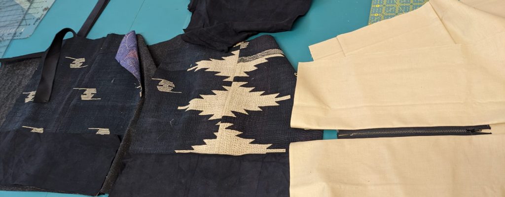 A bag I made from old kantha fabric scraps bought from The Running Stitches at Festival of Quilts.